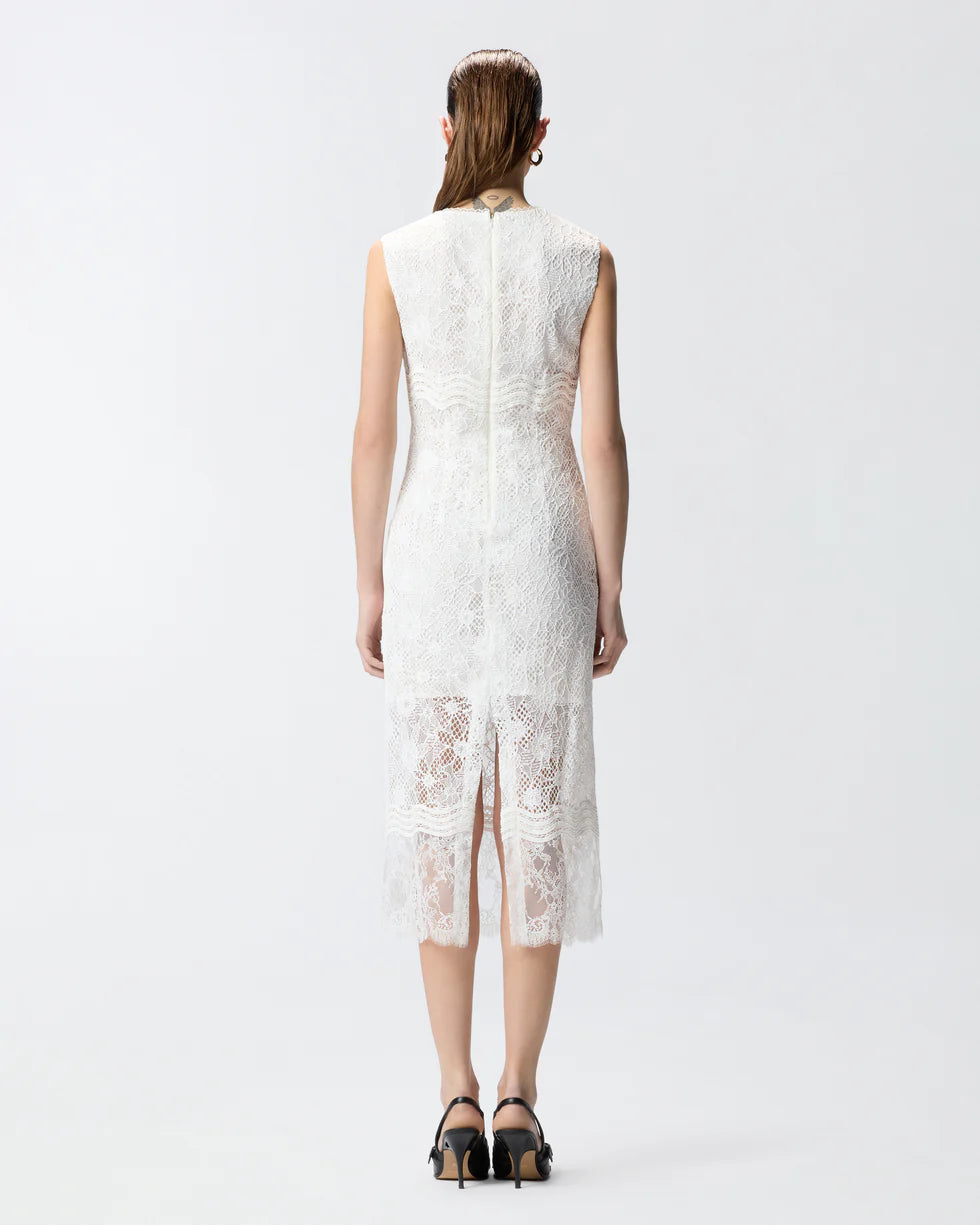 White sleeveless lace midi dress