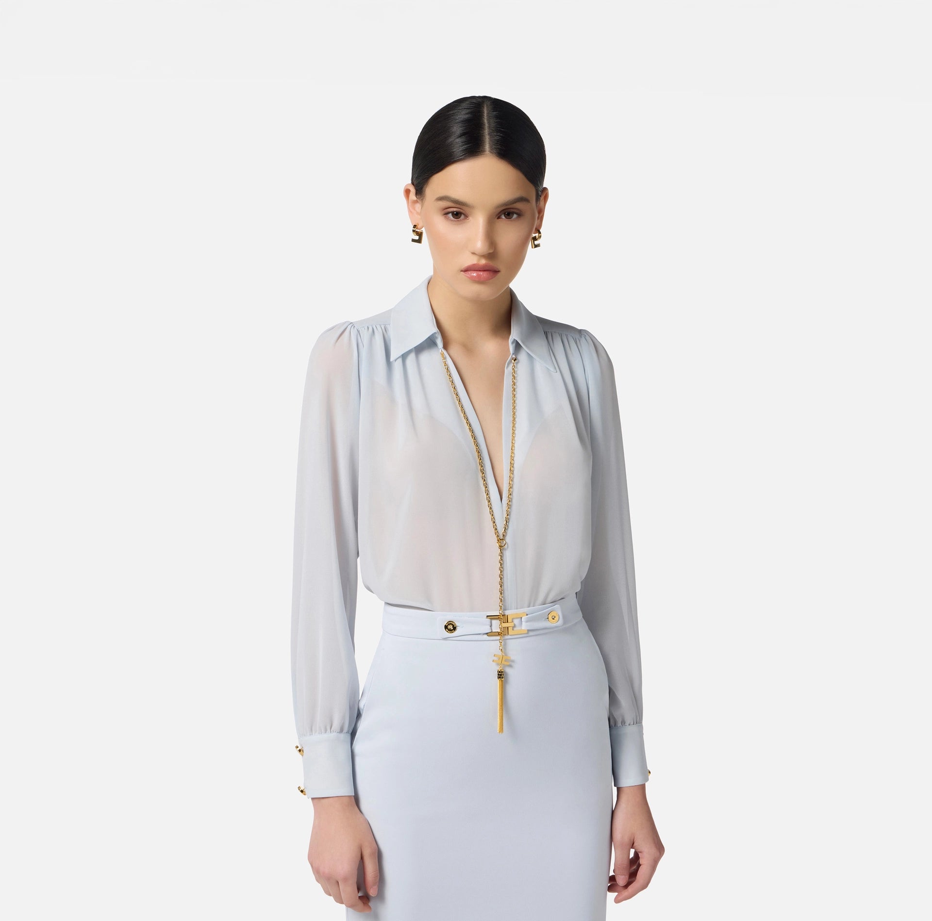 Baby blue blouse with necklace