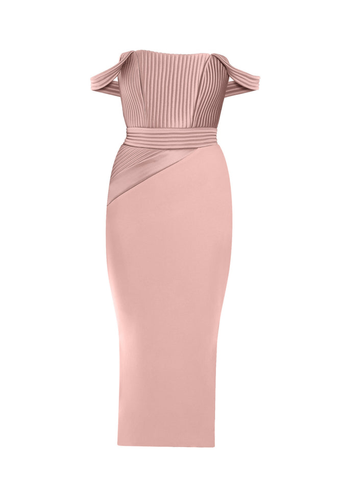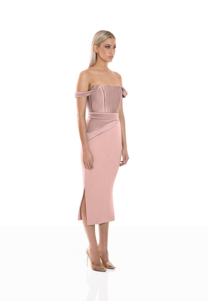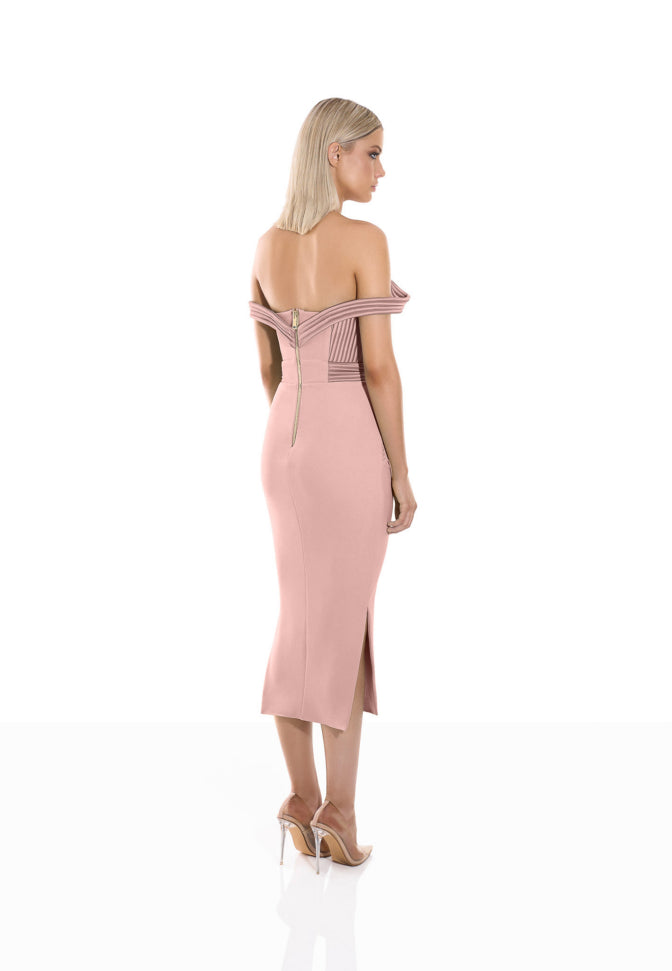 Blush off shoulder midi dress